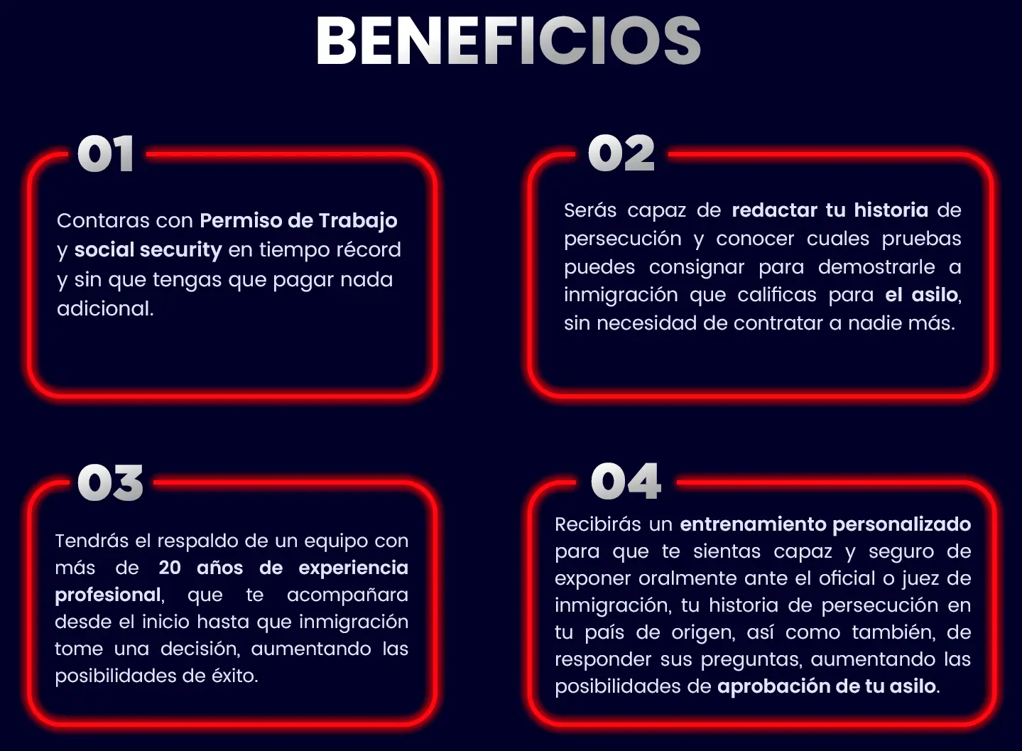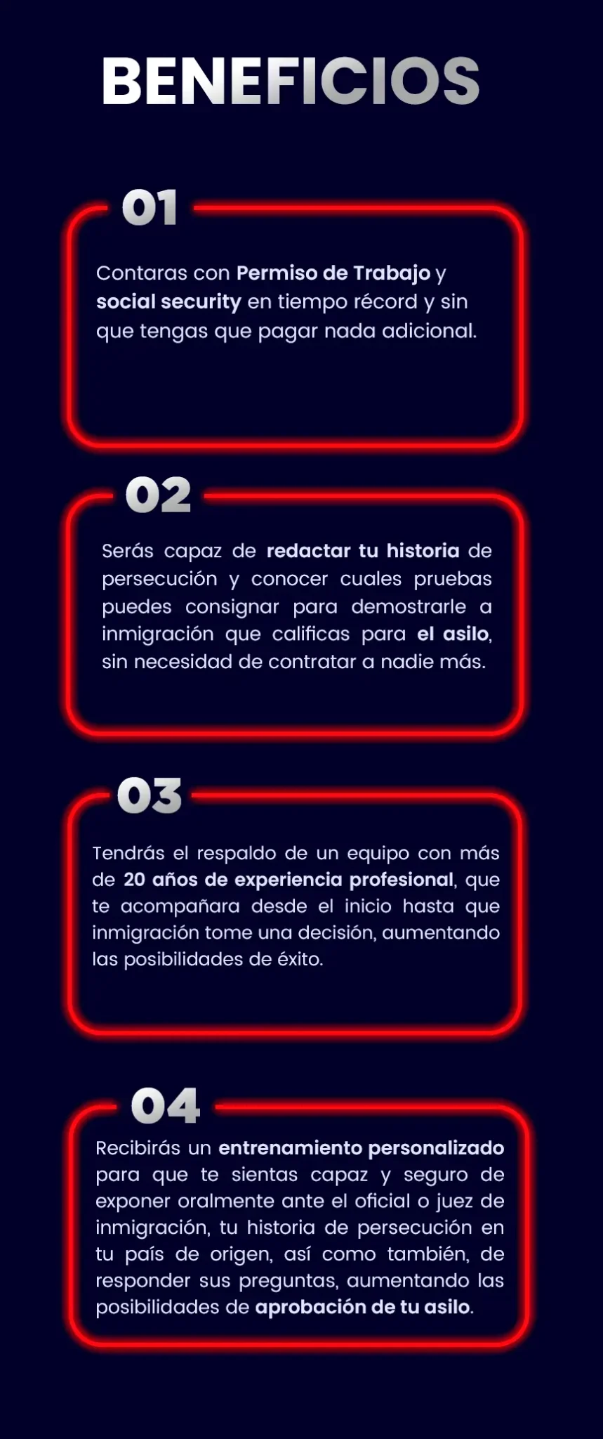 Si en 15 días no tienes tu aplicación de asilo interpuesta ante inmigración, te devolvemos tu dinero.